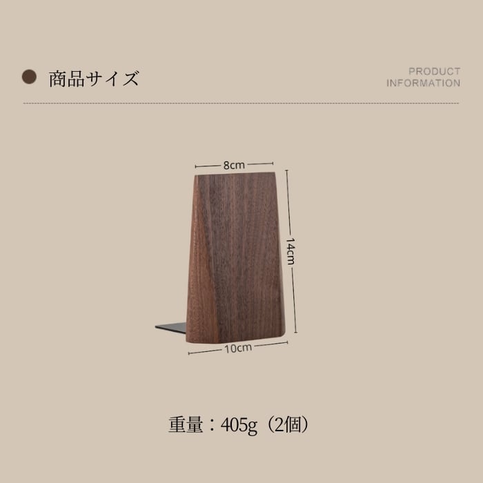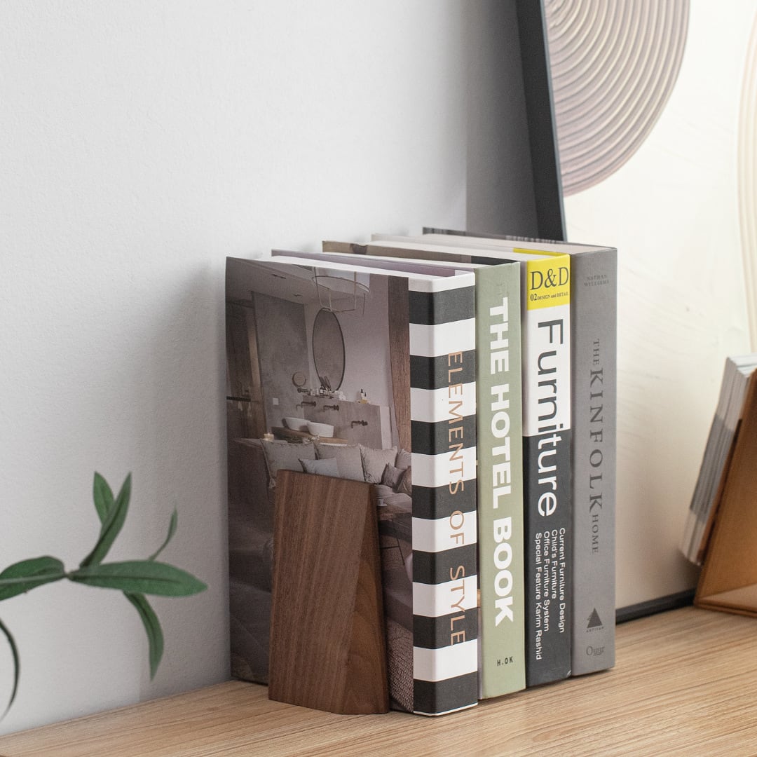 無垢材の美しさを、日常の中で味わえるブックエンドです。