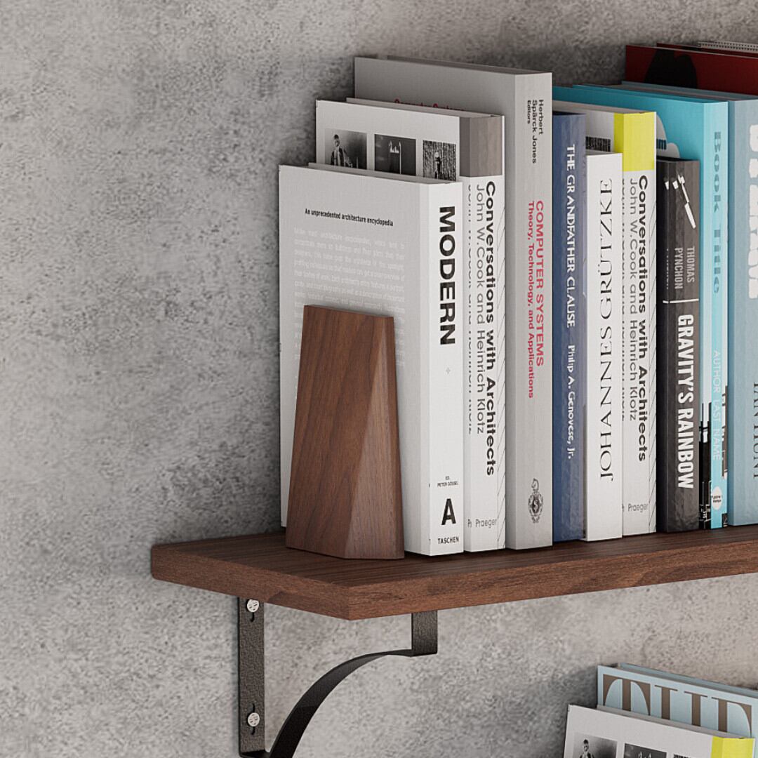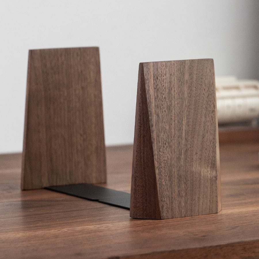 厚みのあるウォルナット無垢材をそのまま活かし、木の塊としての存在感を感じられるブックエンドに仕上げました。