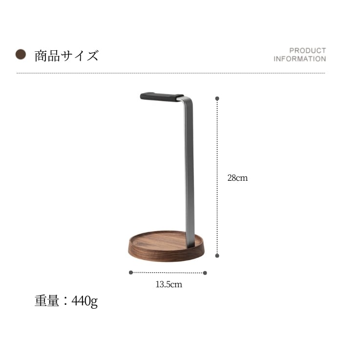 ウォルナット無垢材 × アルミニウム合金 ヘッドホンスタンド