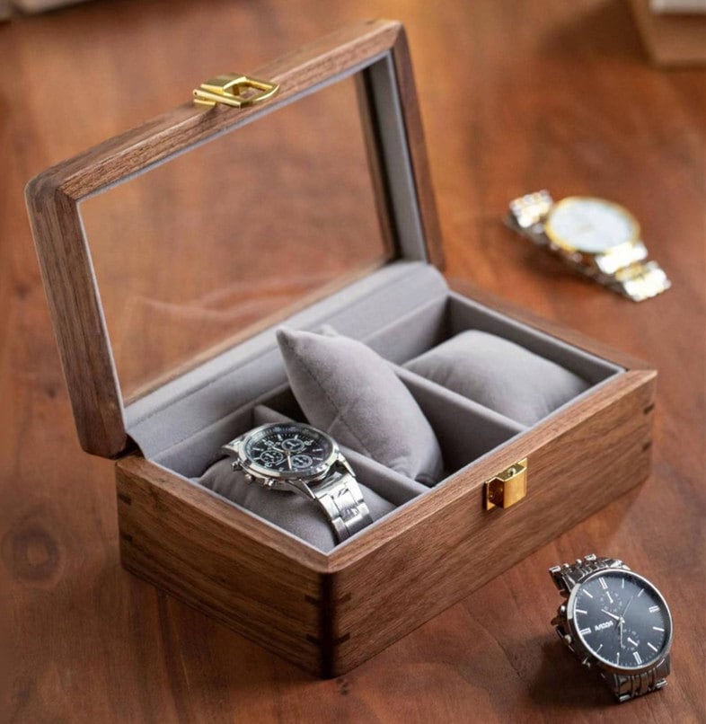 お部屋のインテリアに馴染みやすい、木製の腕時計収納ケースです。ガラスの天板なので、お気に入りのアイテムを美しくディスプレイすることが可能。