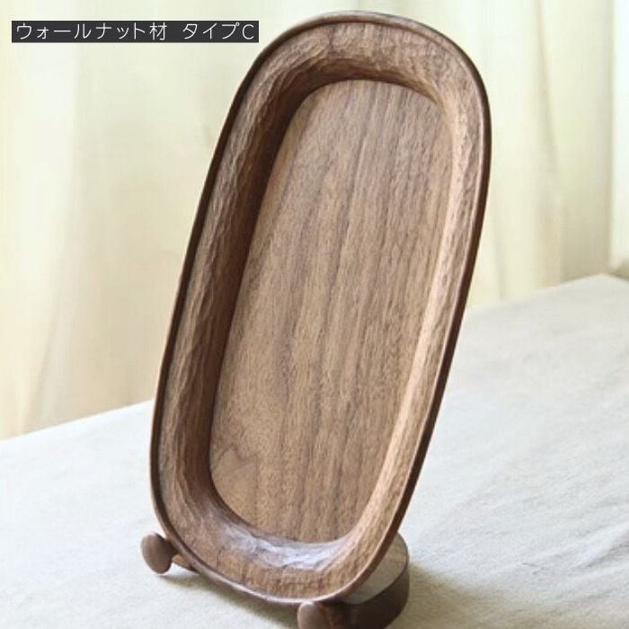 木製 プレート 皿 ウッドプレート トレー お盆トレイ 盛りつけ皿 手彫り 天然木使用 チェリー ウォールナット 北欧 ナチュラル カフェ お茶 お菓子 かわいい おしゃれ お洒落 和風 木目 天然木 無垢材 カフェ風 インテリア 送料無料 HOSHINOTORI